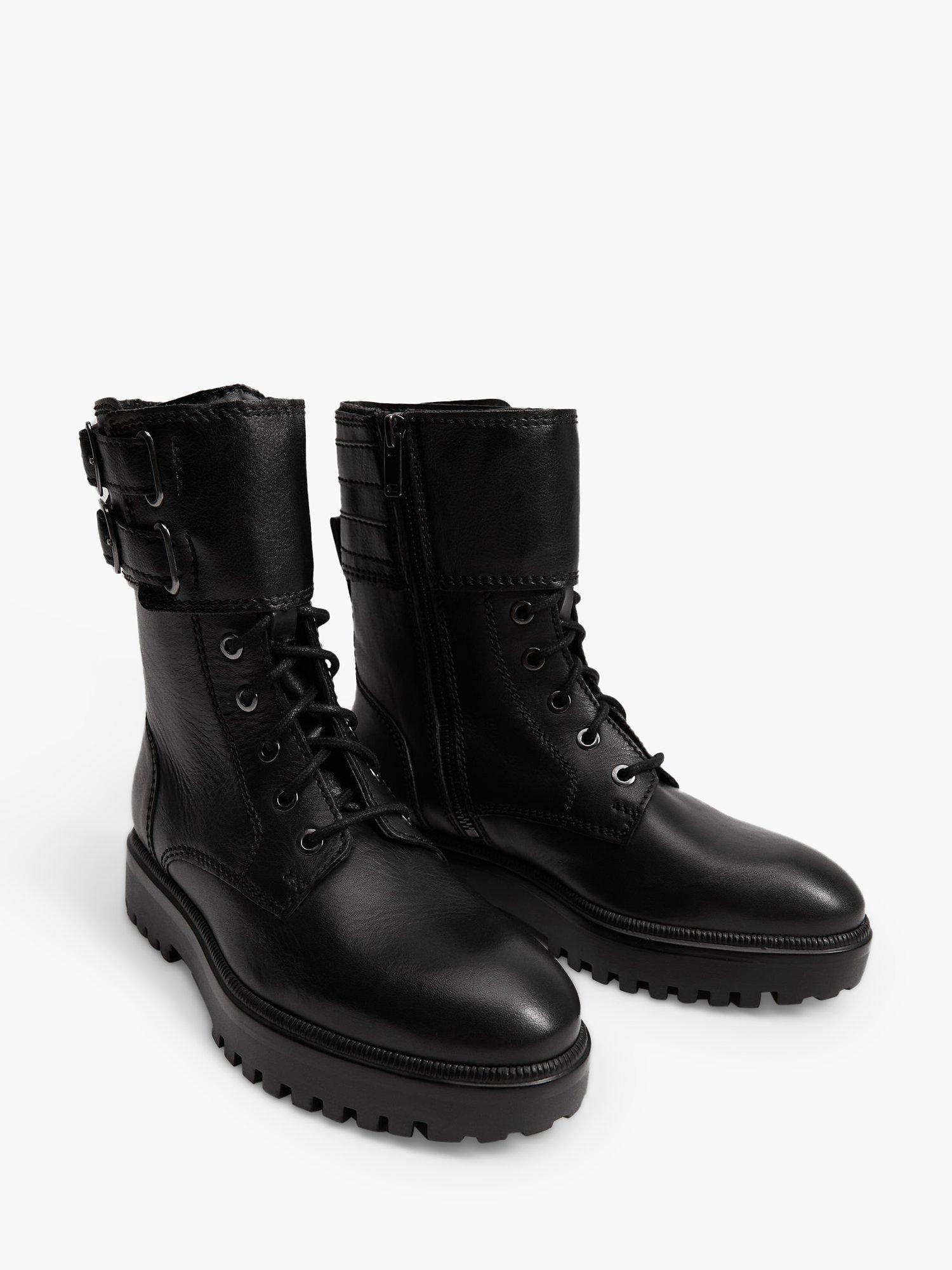 Mango Classic Leather Lace Up Mid Height Biker Boots Black Very well made.