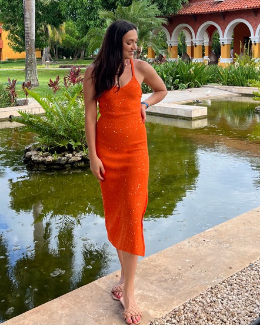 Orange Sequin Knit Midi Dress From Mango Pickle Very well made.