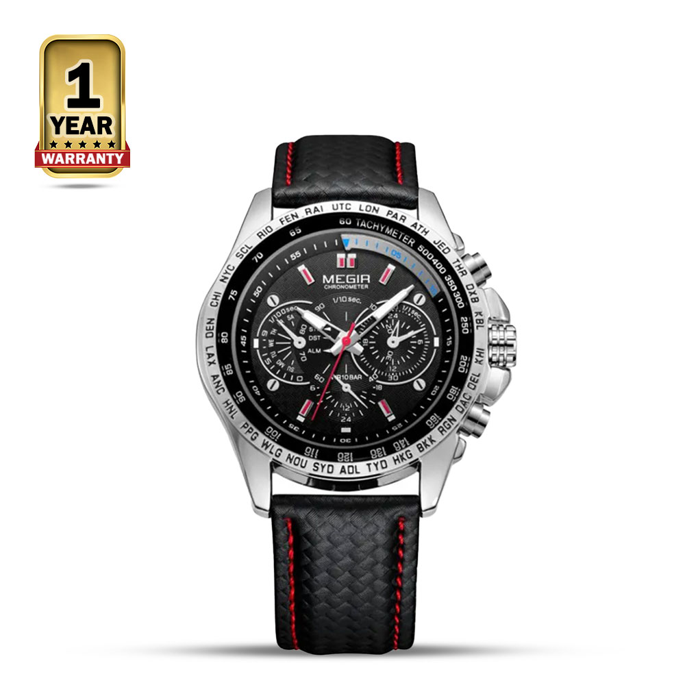 Megir 1010 Genuine Leather Quartz Chronograph Watch For Men Black and White Very well made.