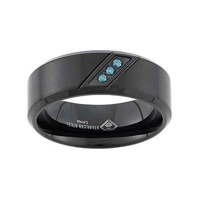 Blue Diamond Accent Black Ion Plated Stainless Steel Wedding Band Men Very well made.
