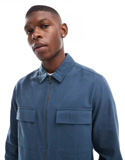 ASOS DESIGN overshirt with front zip in blue Very well made.