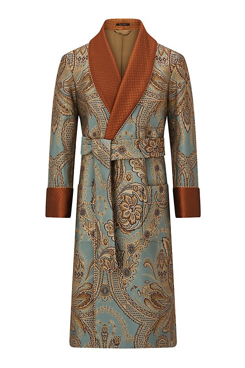 Mens Paisley Silk Robe Gold Dark Blue Dressing Gown Long Baturina Homewear Very well made.