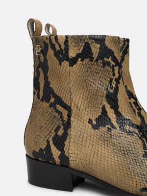 Snake Embossed Leather Ankle Cowboy Boots Brown Tommy Hilfiger Very well made.