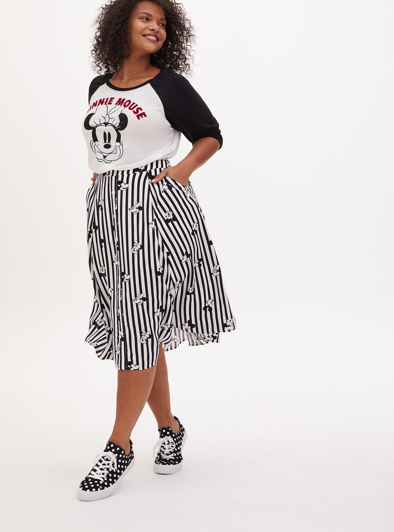Plus Size Disney Mickey Mouse Minnie Mouse Black White Stripe Challis Midi Skirt Torrid Very well made.