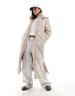 Miss Selfridge quilted hooded maxi puffer coat in mushroom ASOS Very well made.