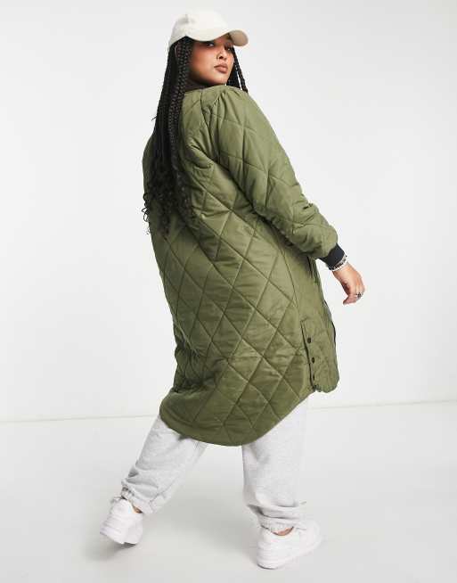 Only Curve longline quilted coat in khaki Very well made.