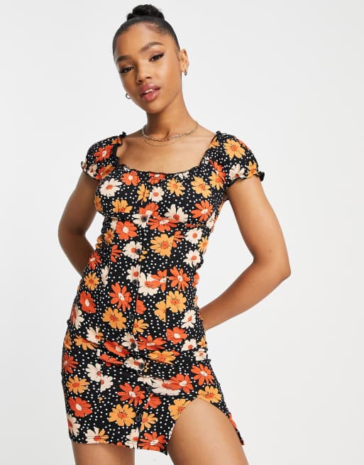 Miss Selfridge Vestito corto aderente nero con bottoni e stampa di girasoli ASOS Very well made.