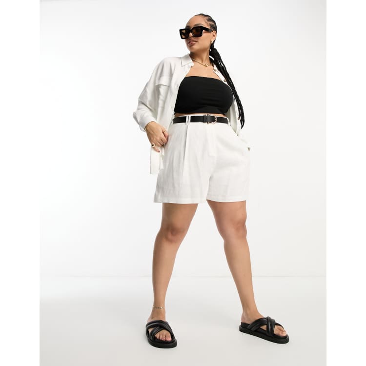 ASOS DESIGN Curve side pocket mom suit shorts with linen in white Very well made.