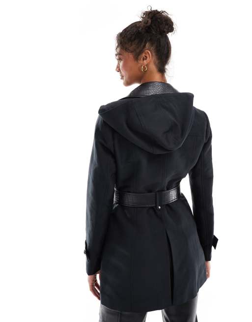 Morgan trench coat with leather look contrast in black ASOS Very well made.