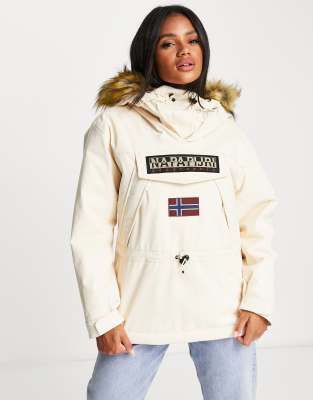 T shirt in cotone con stampa NYC Cra wallonieShops Napapijri skidoo jacket in off white with faux fur hood Very well made.