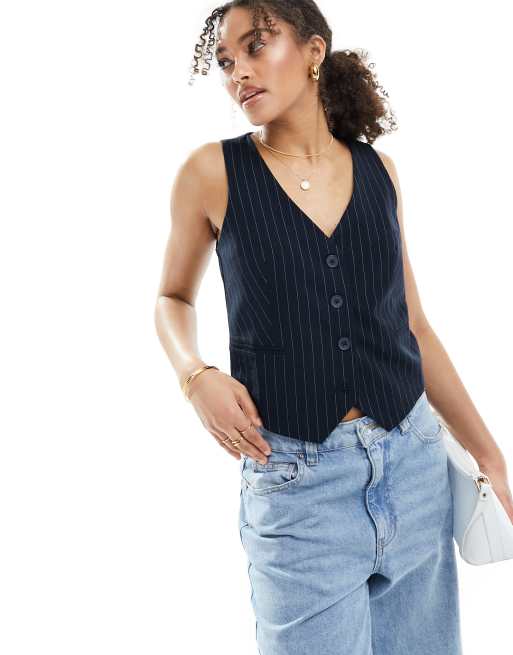 Stradivarius tailored waistcoat in navy pinstripe ASOS Very well made.
