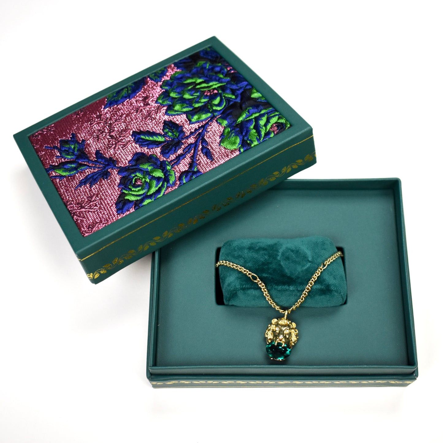 Gucci Gold Lion Pendant Chain Necklace Green Crystal TOP DRWR Very well made.