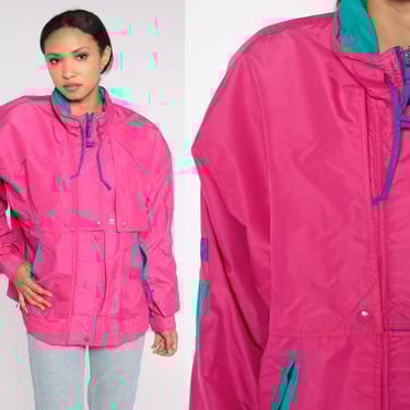 Neon Windbreaker Jacket 80s Hot Pink Zip Up Jacket Retro Shop Exile Tucson AZ Very well made.