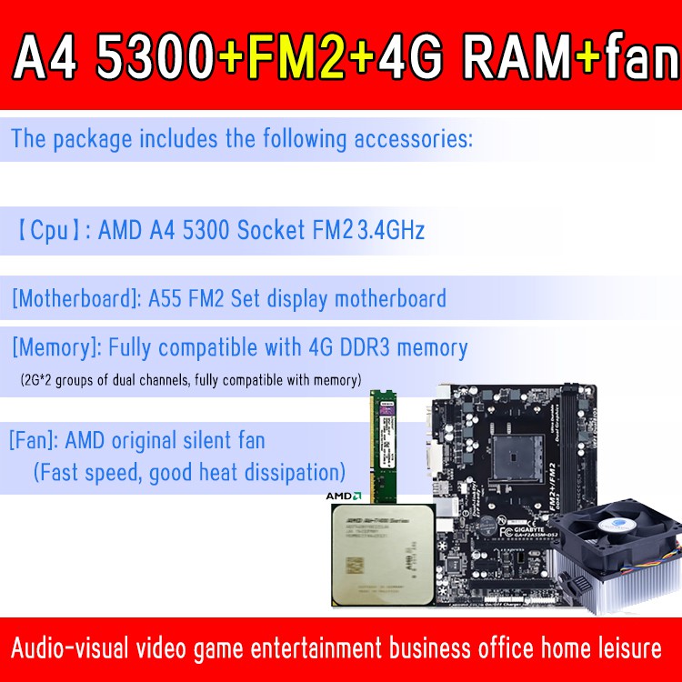 AMD A4 5300 slot FM2 3.4GHz CPU A4 6300 A6 6400K A55 FM2 FM2 motherboard 4G RAM radiator fan four piece discount Very well made.