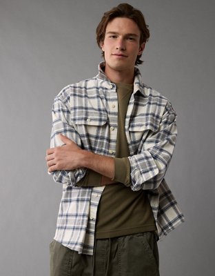 Ae Fireside Flannel Shirt Men s Cream M Very well made.