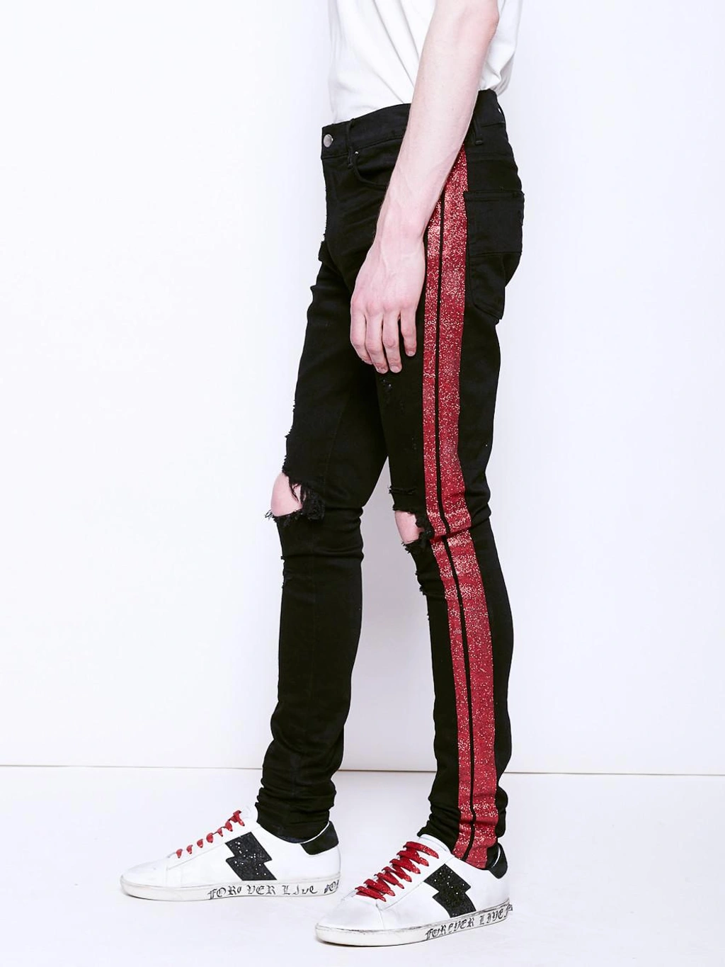Amiri Amiri Red Glitter Stripe Black Denim Jeans Size 36 Grailed Very well made.