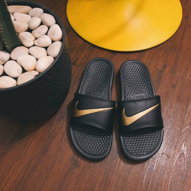 Jual Nike Benassi Slides Swoosh Gold on Black Shopee Indonesia Very well made.