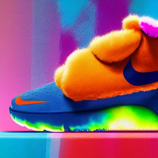 poster nike shoe made of very fluffy colorful faux fur placed on. Arthub.ai Very well made.