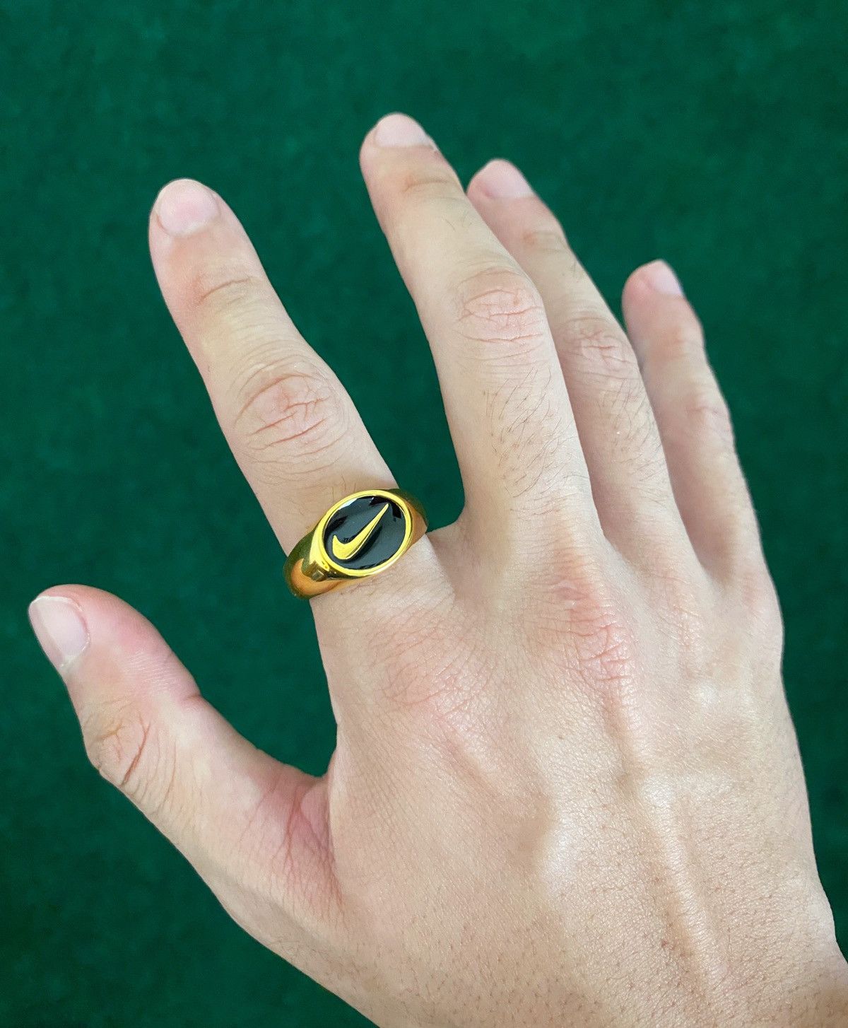 Custom Jewelry Nike Nike Swoosh Engraved Gold Plated Ring Grailed Very well made.