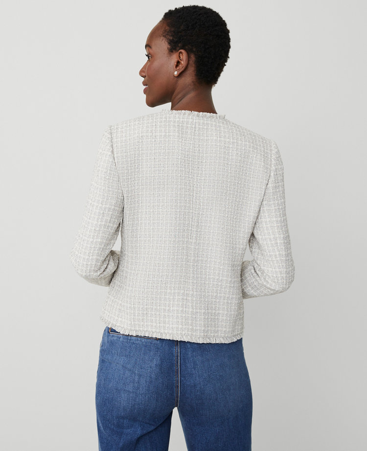 Ann Taylor Tweed Drape Collar Jacket Grey White Combo Women s Mall of America Very well made.