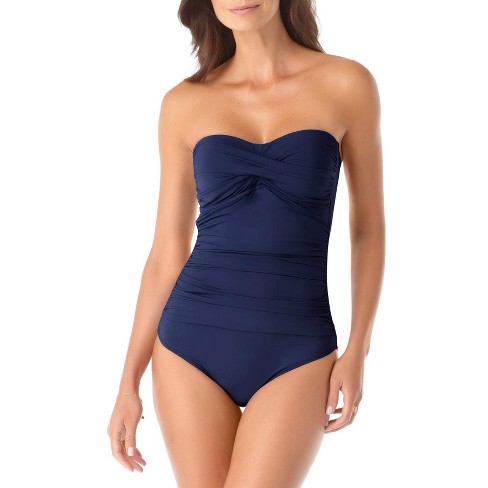 Anne Cole Women s Twist Front Shirred One Piece Navy Size 12 Target Very well made.