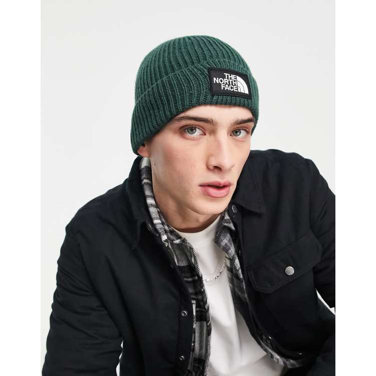 The North Face Logo Box Cuffed beanie in green Very well made.