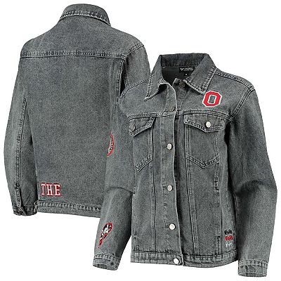 Women s The Wild Collective Gray Ohio State Buckeyes Patches Full Button Denim Jacket Very well made.
