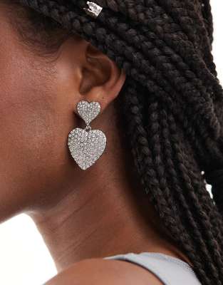 Accessorize pave double drop heart earrings in silver ASOS Very well made.