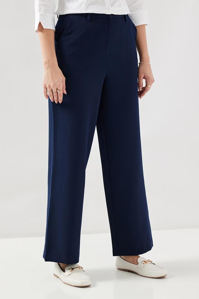 Buy STOP Navy Solid Blended Fabric Regular Fit Women s Formal Trousers Shoppers Stop Very well made.