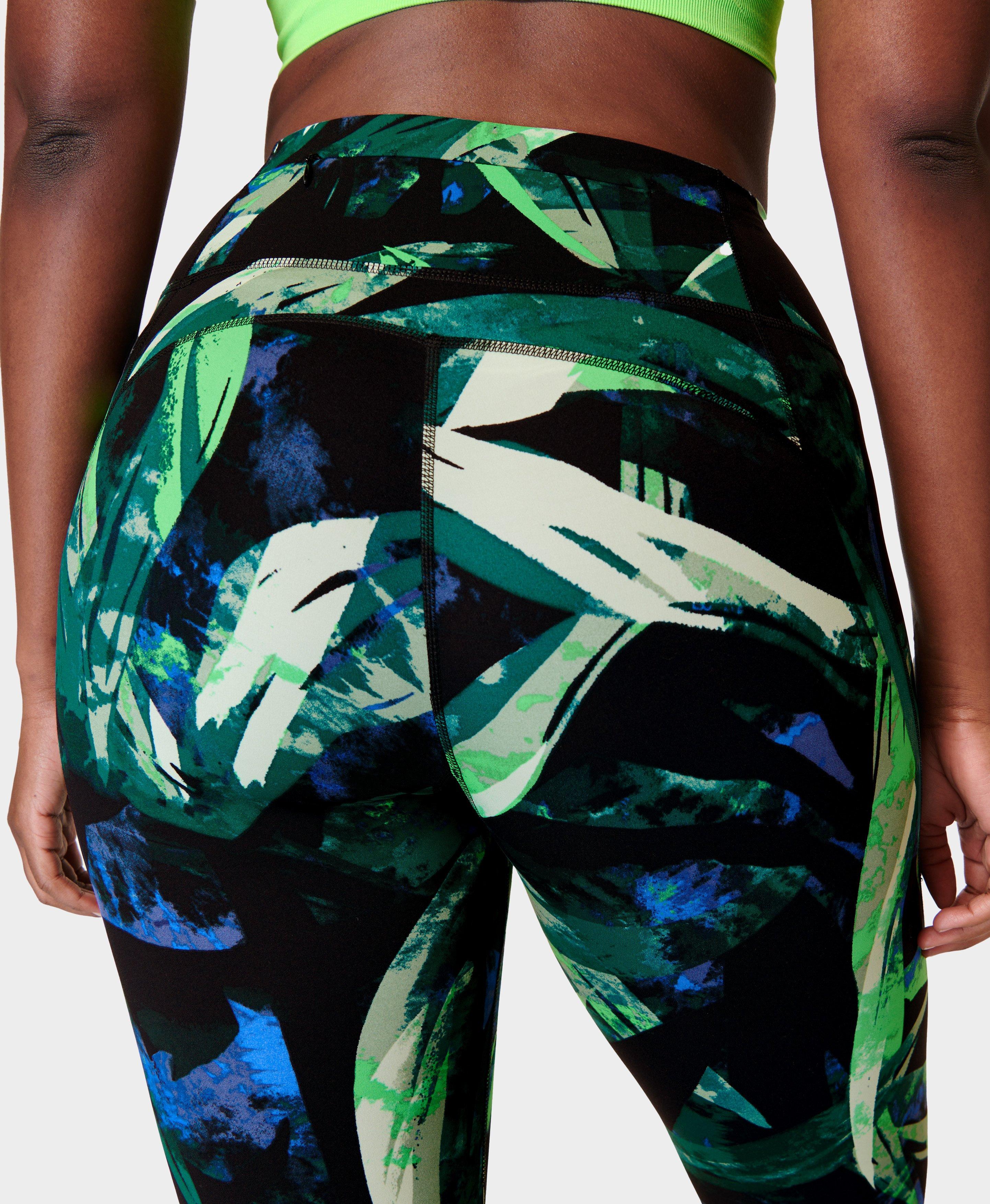 Power 7 8 Workout Leggings Green Areca Palm Print Women s Leggings Sweaty Betty Very well made.