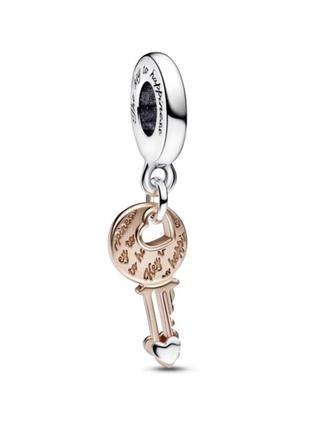 Family heart sterling silver and 14k rose gold plated charm PANDORA Very well made.