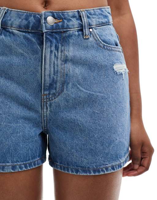 ONLY Pantaloncini mom in denim blu medio a vita alta effetto invecchiato ASOS Very well made.