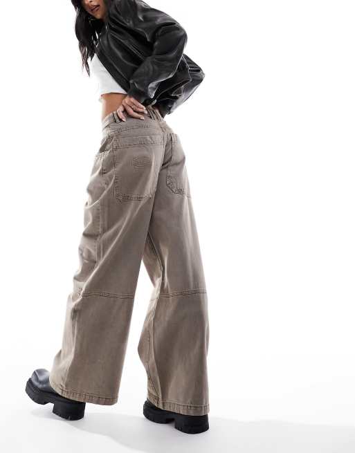 Bershka Pantaloni larghi a fondo ampio marrone slavato Very well made.