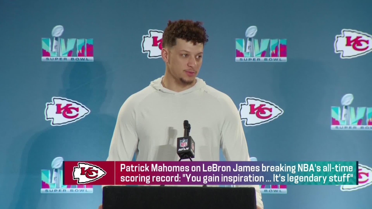 Kansas City Chiefs quarterback Patrick Mahomes offers his reaction to Los Angeles Lakers forward LeBron James breaking NBA s all time scoring record Very well made.