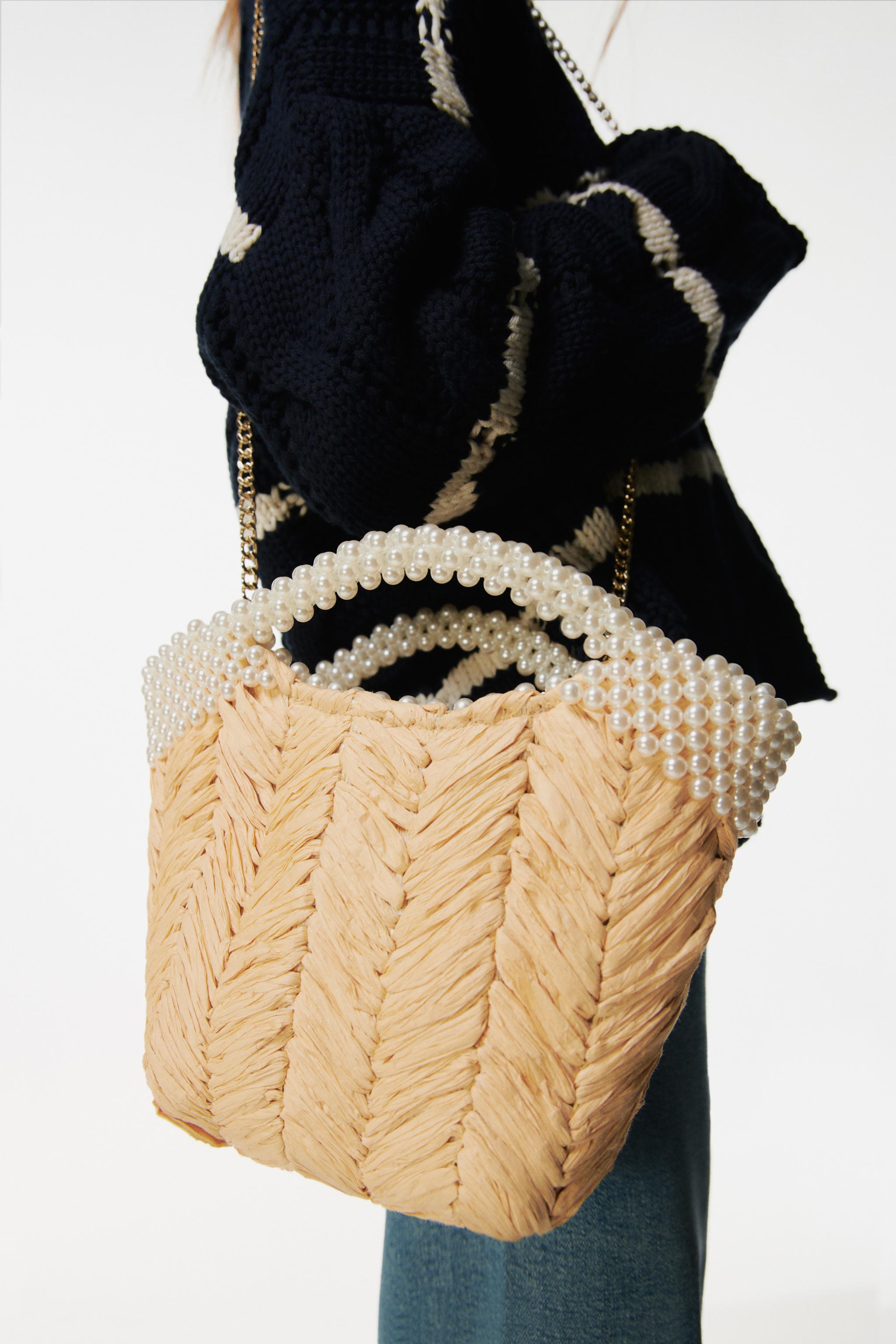 FAUX PEARL BEAD BASKET BAG Natural ZARA Spain Very well made.