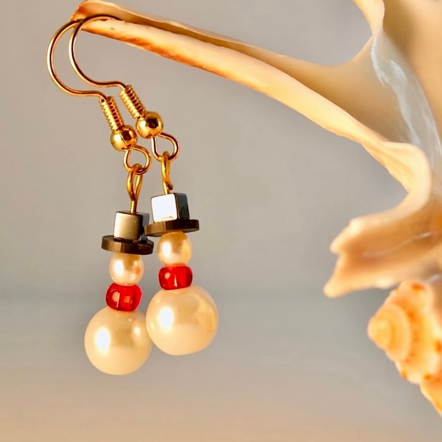 Christmas Snowman Earrings Glass Pearls Stoc. Folksy Very well made.
