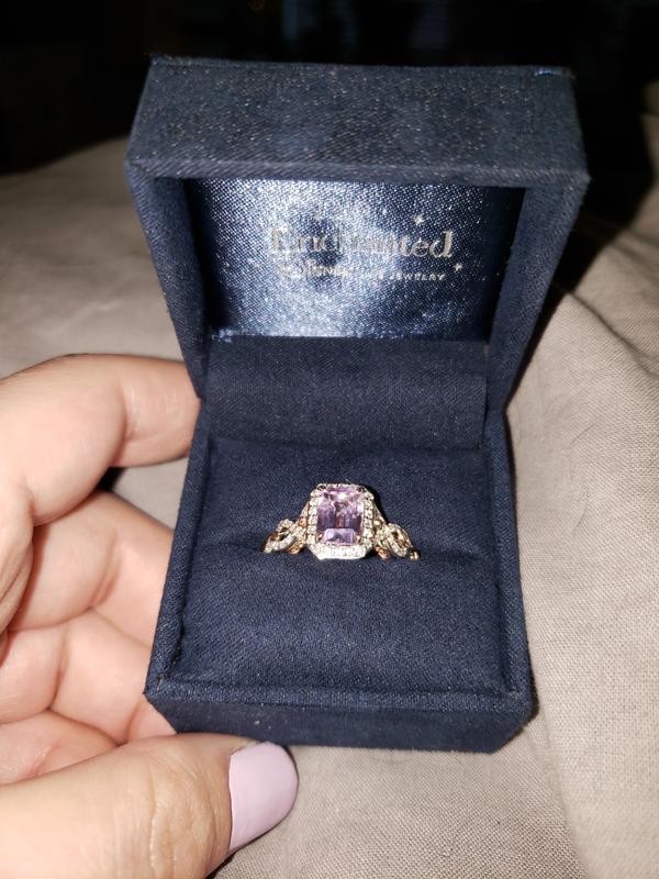 Enchanted Disney Rapunzel Rose de France Amethyst and 0.32 CT. T.W. Diamond Frame Engagement Ring in 14K Two Tone Gold Peoples Jewellers Very well made.