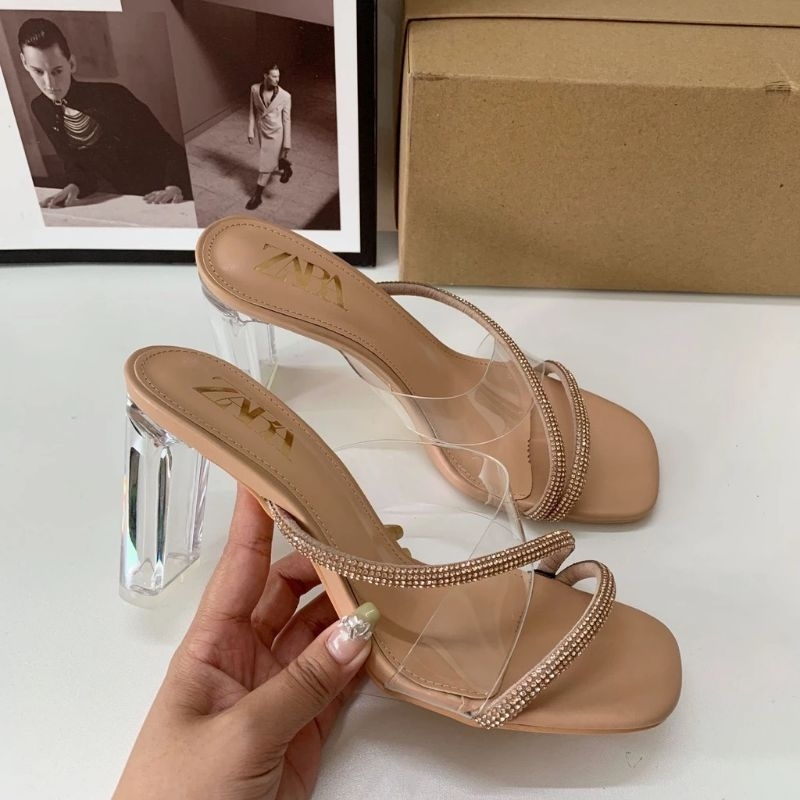 READY STOCK ZARA inspired heels Sharon Diamante Embellished Perspex Block Heels Shopee Malaysia Very well made.