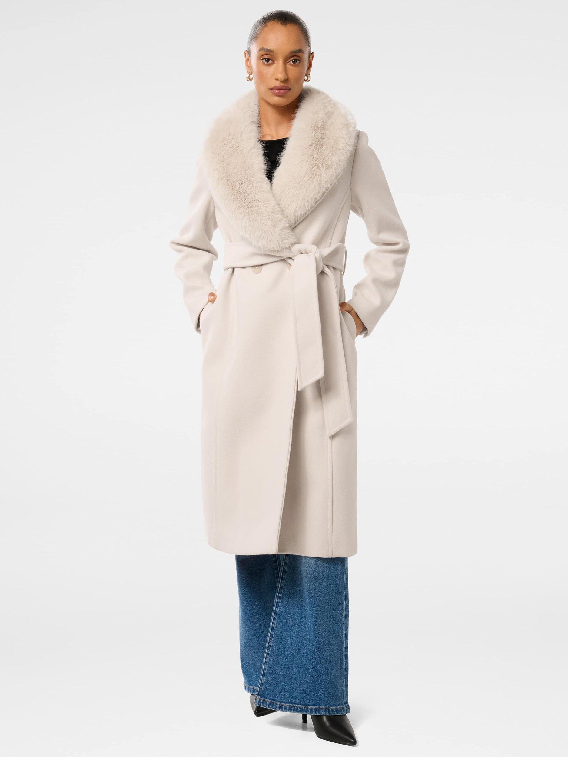 Forever New Petite Monica Faux Fur Collar Wrap Coat Cream Very well made.