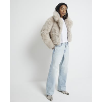 Petite Cream faux fur short Jacket River Island Very well made.