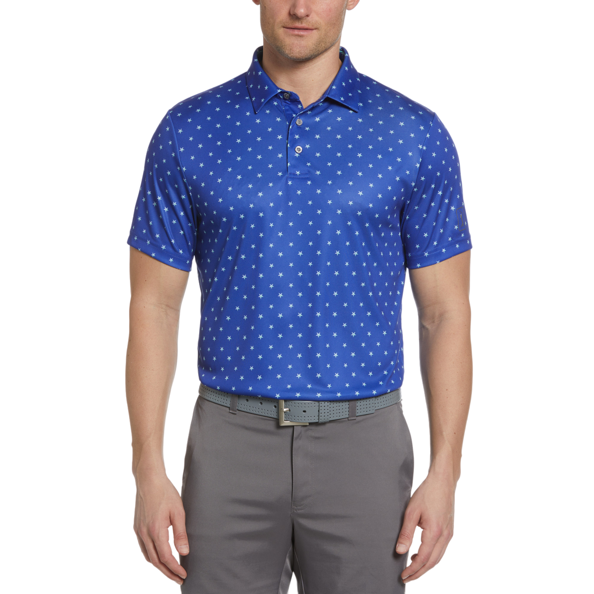 PGA Tour Mens Asymmetric Geo Print Performance Golf Short Sleeve Polo ShopCGX Very well made.