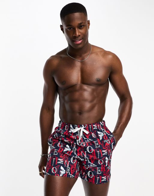 Emporio Armani Bodywear all over logo print swim shorts in navy ASOS Very well made.