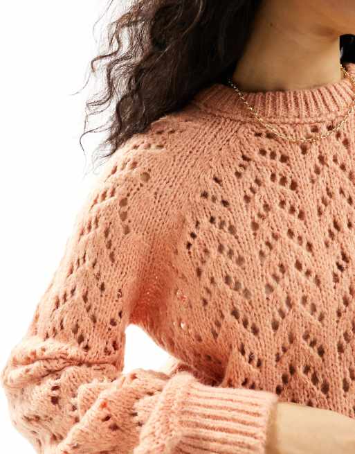 ASOS Design Crew Neck Sweater in Loose Pointelle Stitch in apricot Orange Very well made.