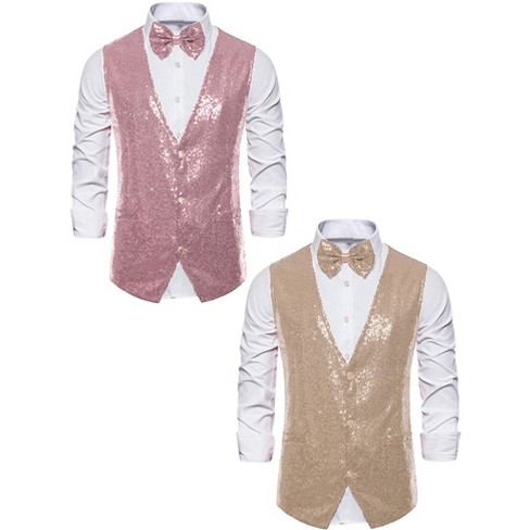 Lars Amadeus Men s Shiny Sequins Disco Party Prom Formal Vest With Bow Tie 2 Packs Pink champagne L Target Very well made.