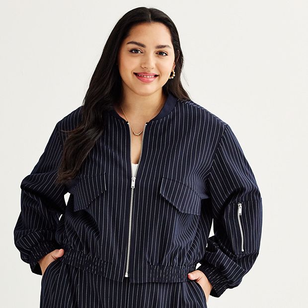 Juniors Plus Size SO Cropped Pinstripe Bomber Jacket Very well made.