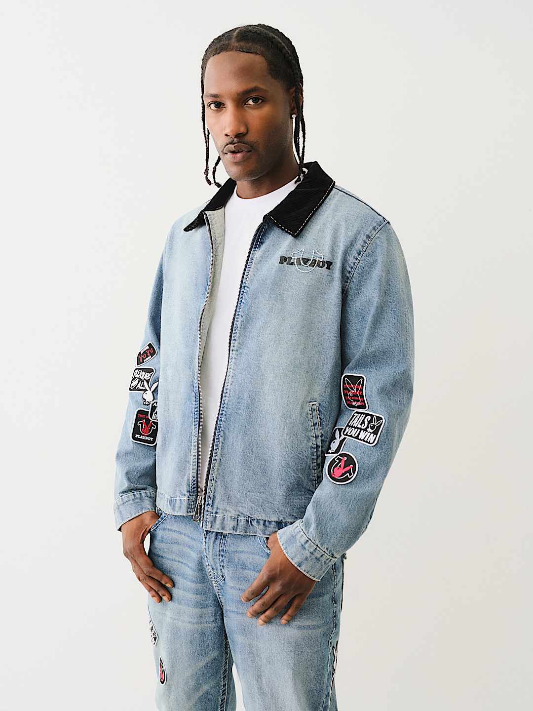 True Religion Playboy Big T Work Denim Jacket Blue Mainline Menswear Denmark Very well made.
