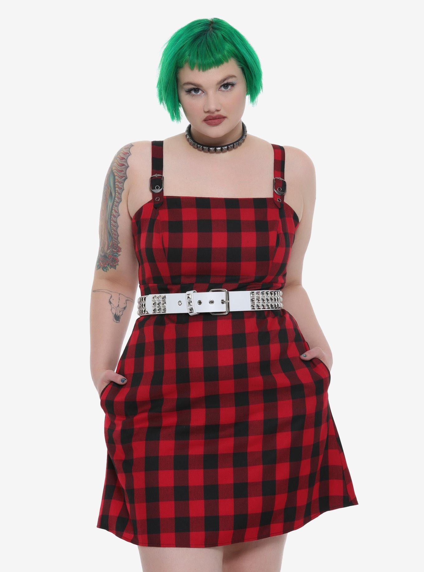 Red Black Buffalo Plaid Buckle Strap Dress Plus Size Hot Topic Very well made.