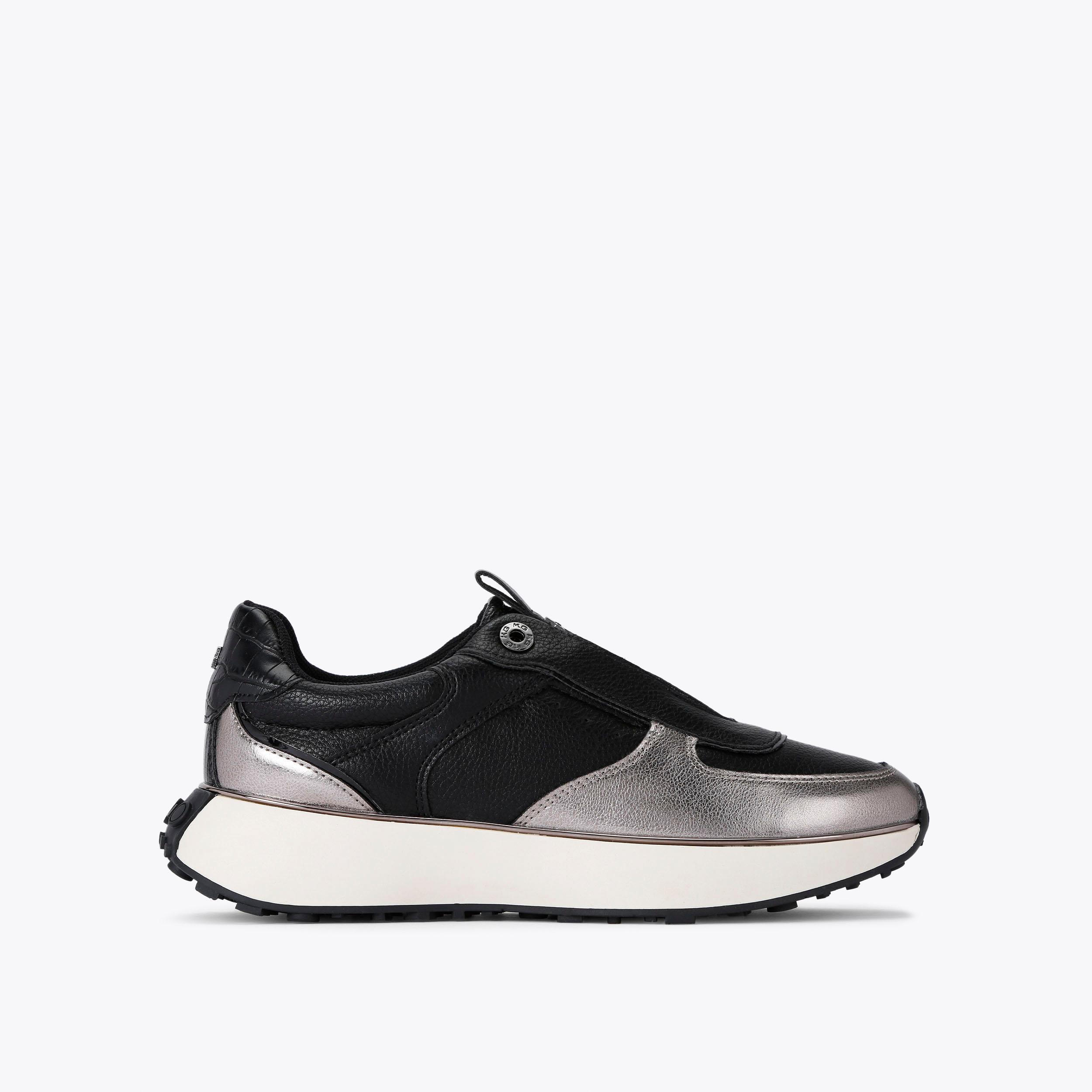 LOGAN LACELESS Black Metallic Sneaker by KG KURT GEIGER Very well made.