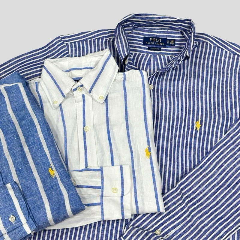 RL linen navy white striped long sleeved button up classic fit Shopee Thailand Very well made.