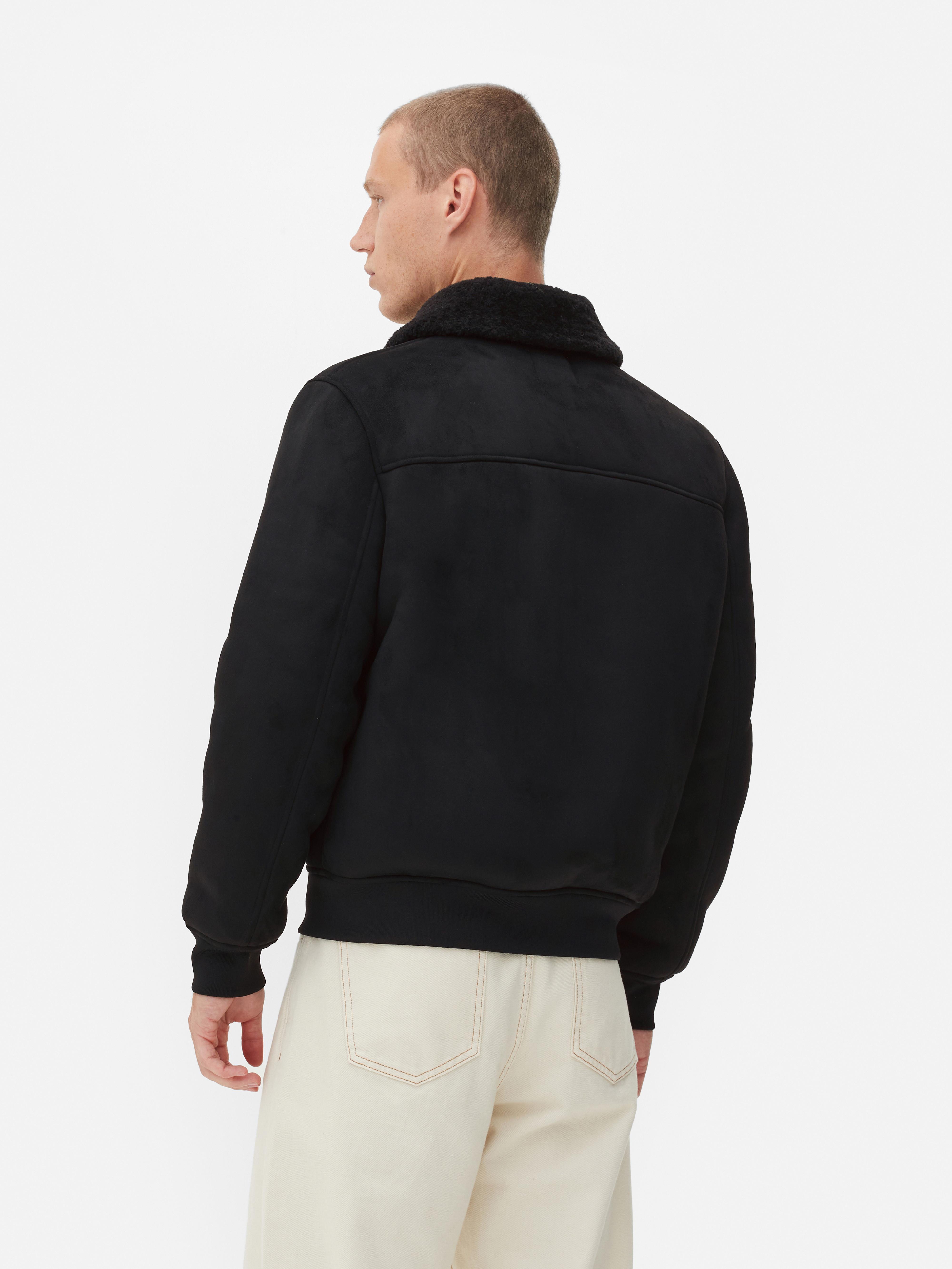 Men s Black Borg Collar Faux Suede Jacket Primark Very well made.